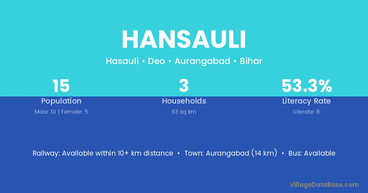 Aurangabad (14 km) is the nearest town to Hansauli village for major economic activities and is located approximately 14 km away.