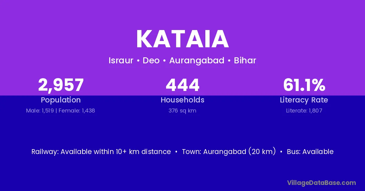 Aurangabad (20 km) is the nearest town to Kataia village for major economic activities and is located approximately 20 km away.