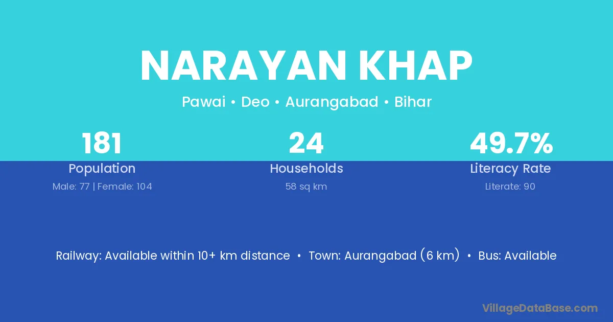 Aurangabad (6 km) is the nearest town to Narayan Khap village for major economic activities and is located approximately 6 km away.
