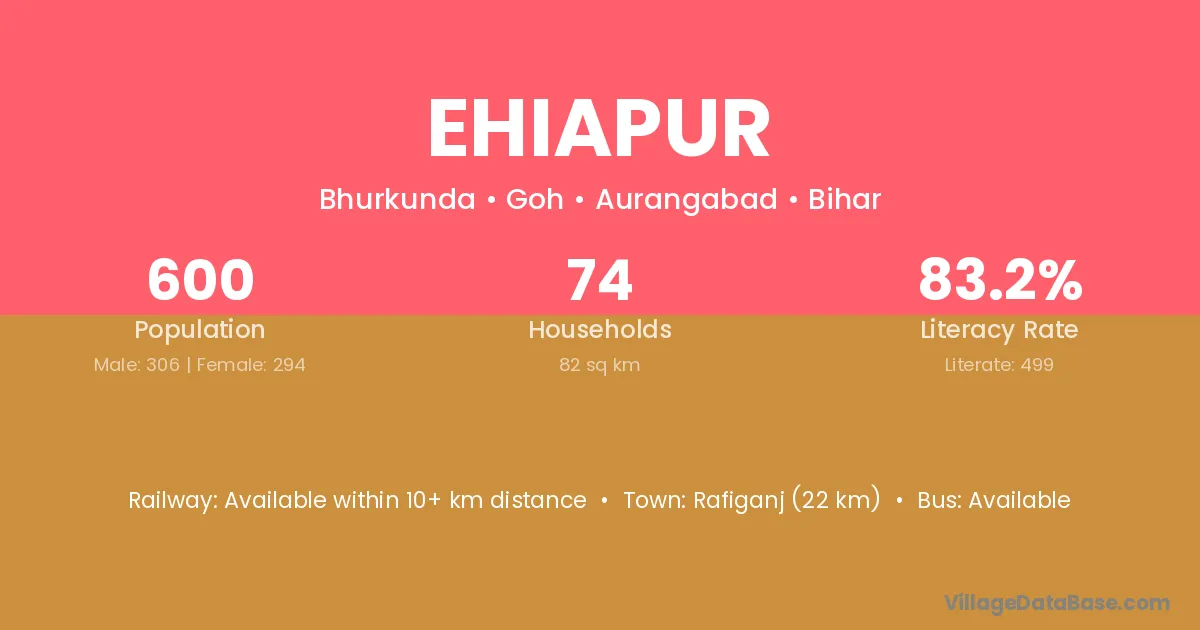 Rafiganj (22 km) is the nearest town to Ehiapur village for major economic activities and is located approximately 22 km away.