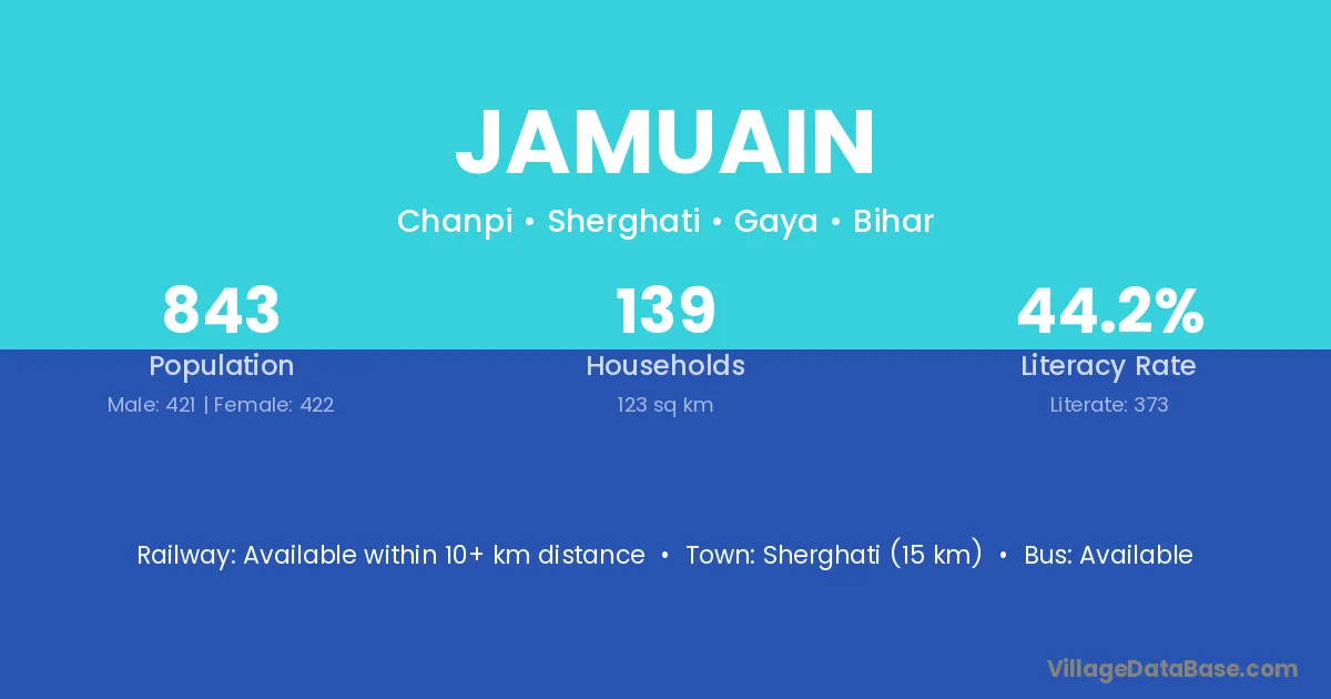 Rafiganj (15 km) is the nearest town to Jamuain village for major economic activities and is located approximately 15 km away.