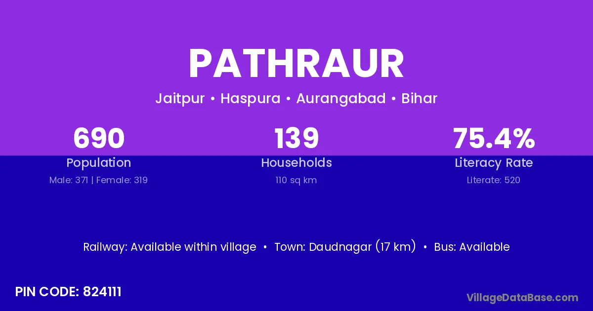 Daudnagar (17 km) is the nearest town to Pathraur village for major economic activities and is located approximately 17 km away.