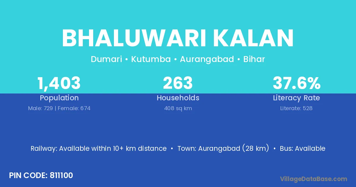 Aurangabad (28 km) is the nearest town to Bhaluwari Kalan village for major economic activities and is located approximately 28 km away.