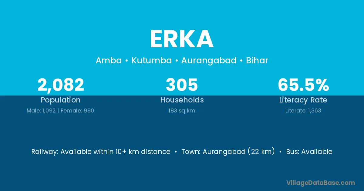 Aurangabad (22 km) is the nearest town to Erka village for major economic activities and is located approximately 22 km away.