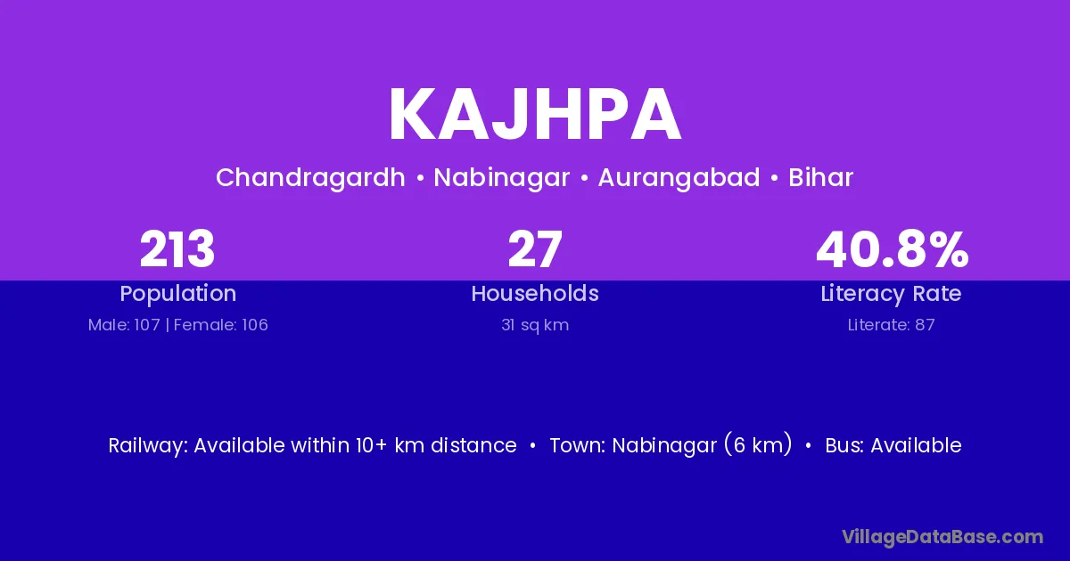 Aurangabad (27 km) is the nearest town to Kajhpa village for major economic activities and is located approximately 27 km away.