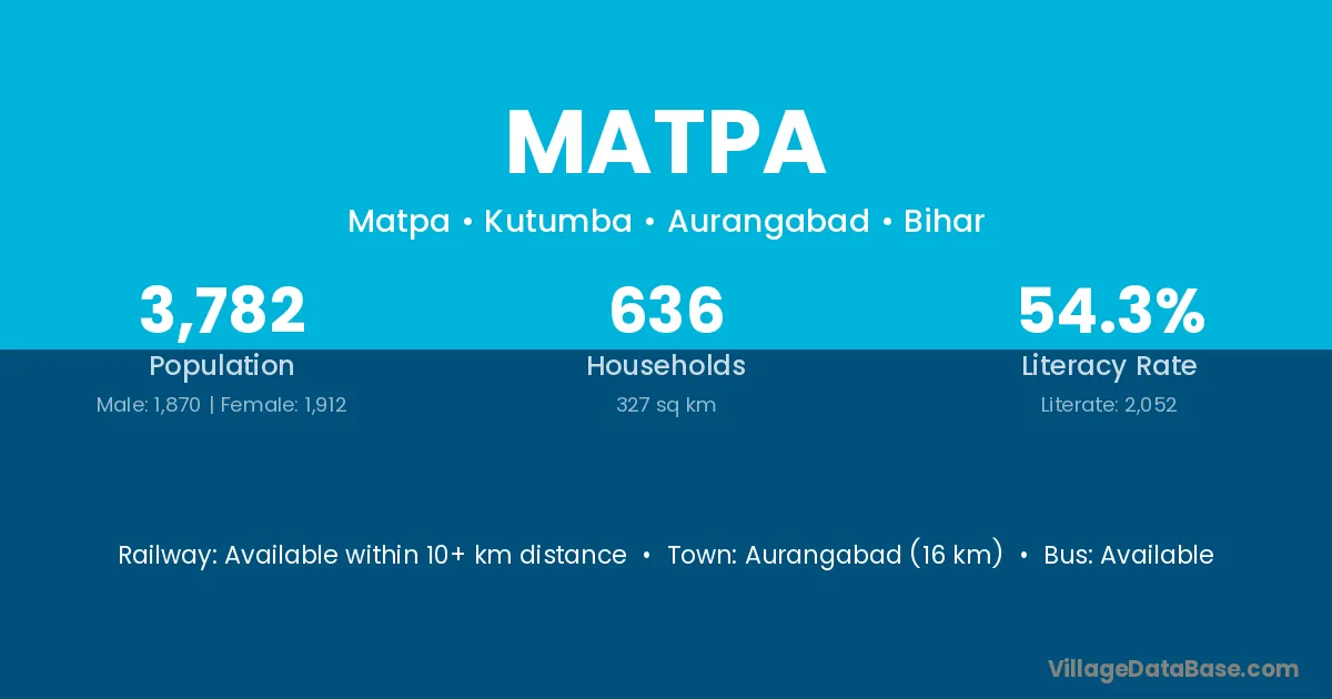 Aurangabad (16 km) is the nearest town to Matpa village for major economic activities and is located approximately 16 km away.