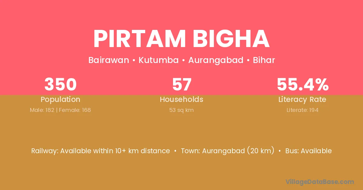 Pirtam Bigha village has a total population of 350 people, of which 182 are males and 168 are females.
