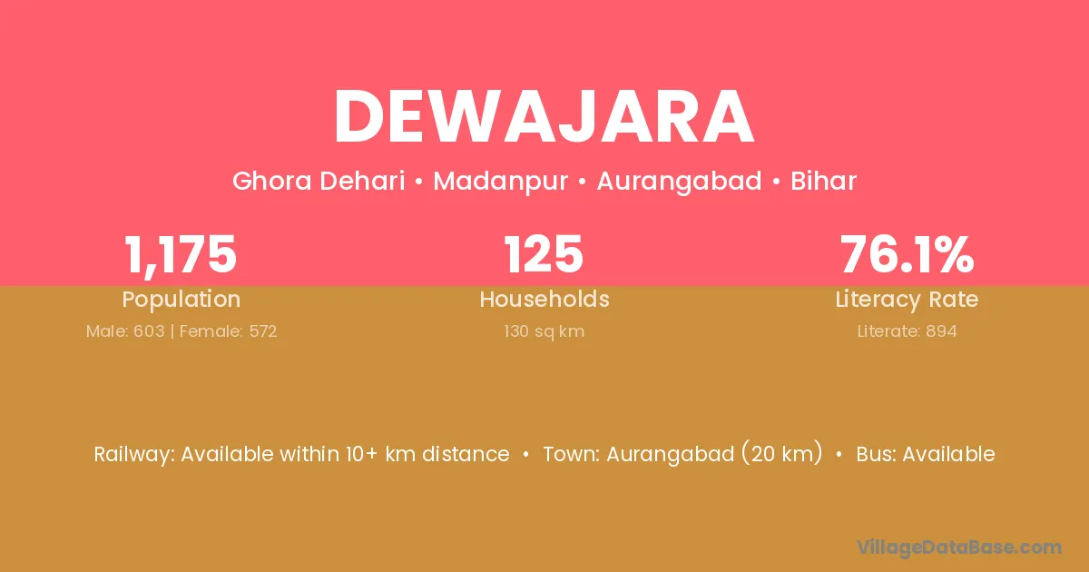 Aurangabad (20 km) is the nearest town to Dewajara village for major economic activities and is located approximately 20 km away.