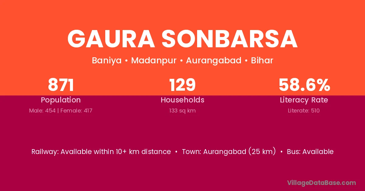 Gaura Sonbarsa village has a total population of 871 people, of which 454 are males and 417 are females.