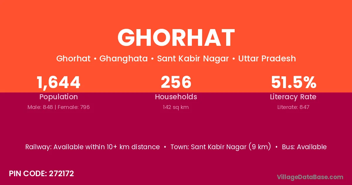 Ghorhat village has a total population of 1,131 people, of which 567 are males and 564 are females.