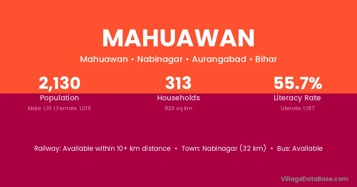 Rafiganj (16 km) is the nearest town to Mahuawan village for major economic activities and is located approximately 16 km away.