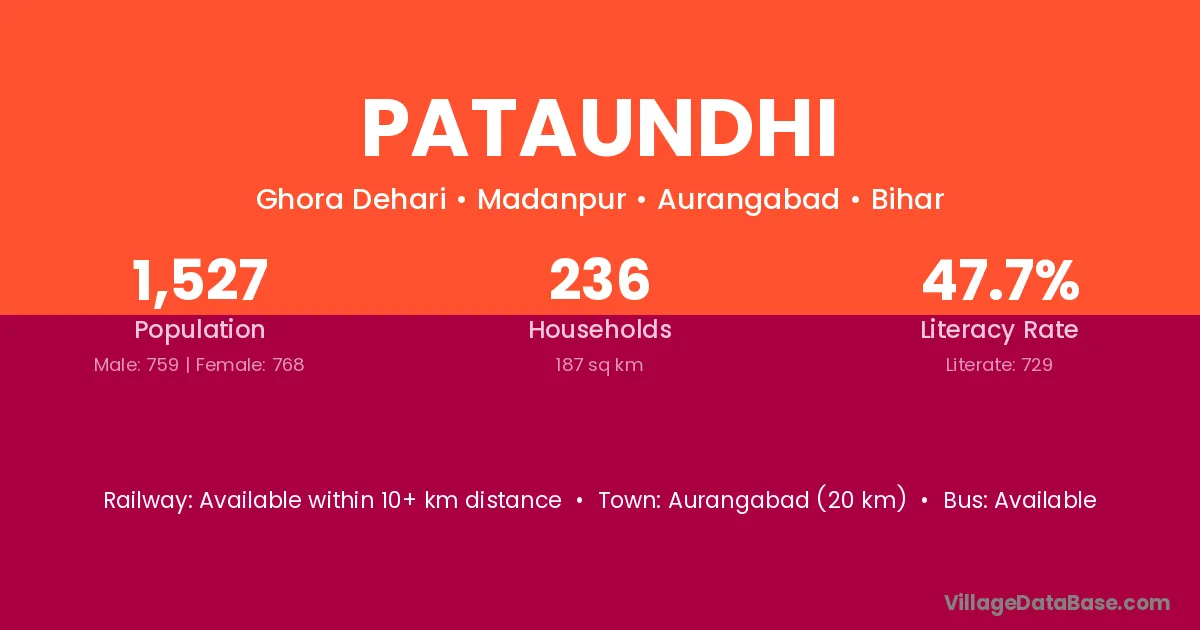 Aurangabad (20 km) is the nearest town to Pataundhi village for major economic activities and is located approximately 20 km away.