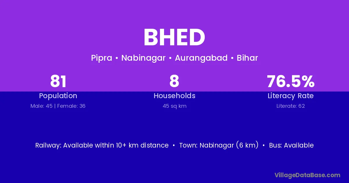 Nabinagar (6 km) is the nearest town to Bhed village for major economic activities and is located approximately 6 km away.