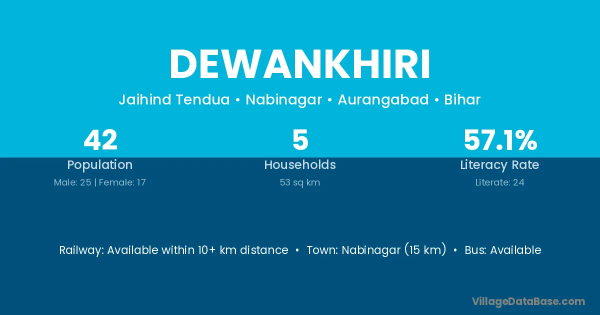 Nabinagar (15 km) is the nearest town to Dewankhiri village for major economic activities and is located approximately 15 km away.
