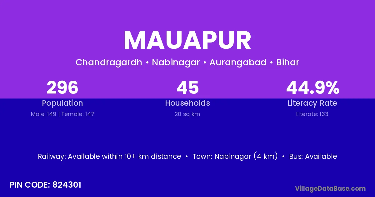Nabinagar (4 km) is the nearest town to Mauapur village for major economic activities and is located approximately 4 km away.