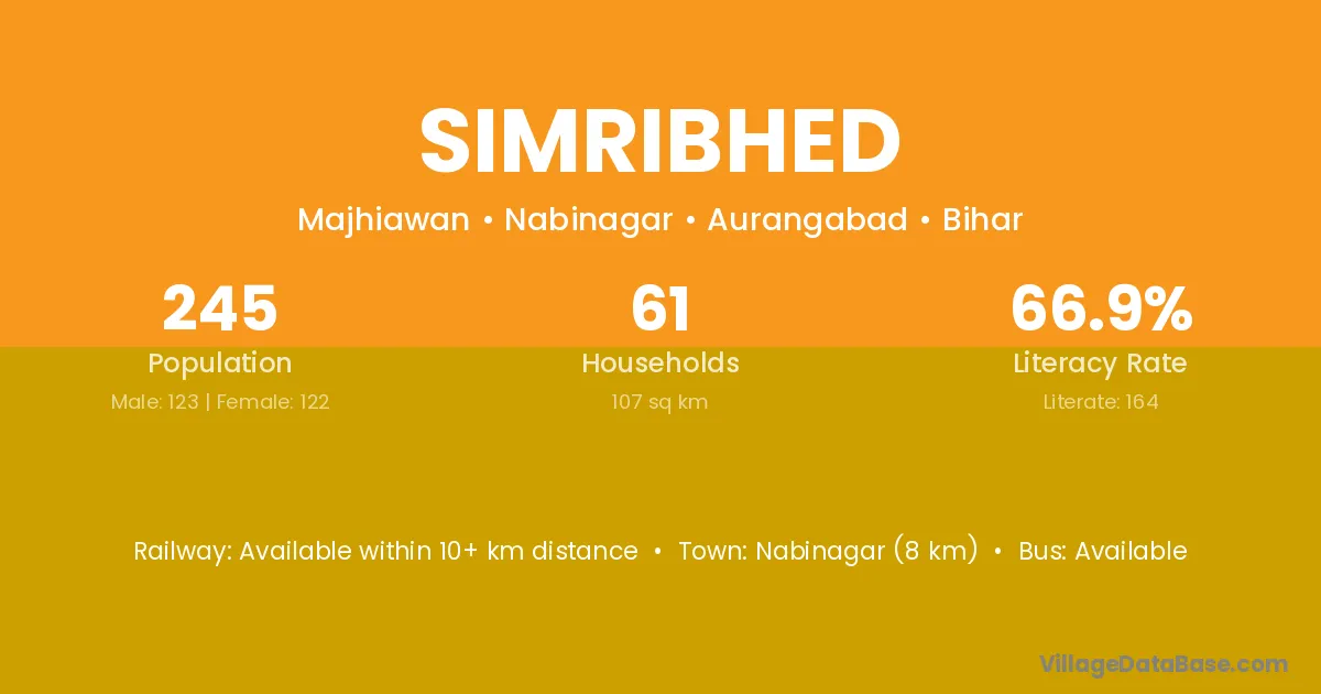 Nabinagar (8 km) is the nearest town to Simribhed village for major economic activities and is located approximately 8 km away.