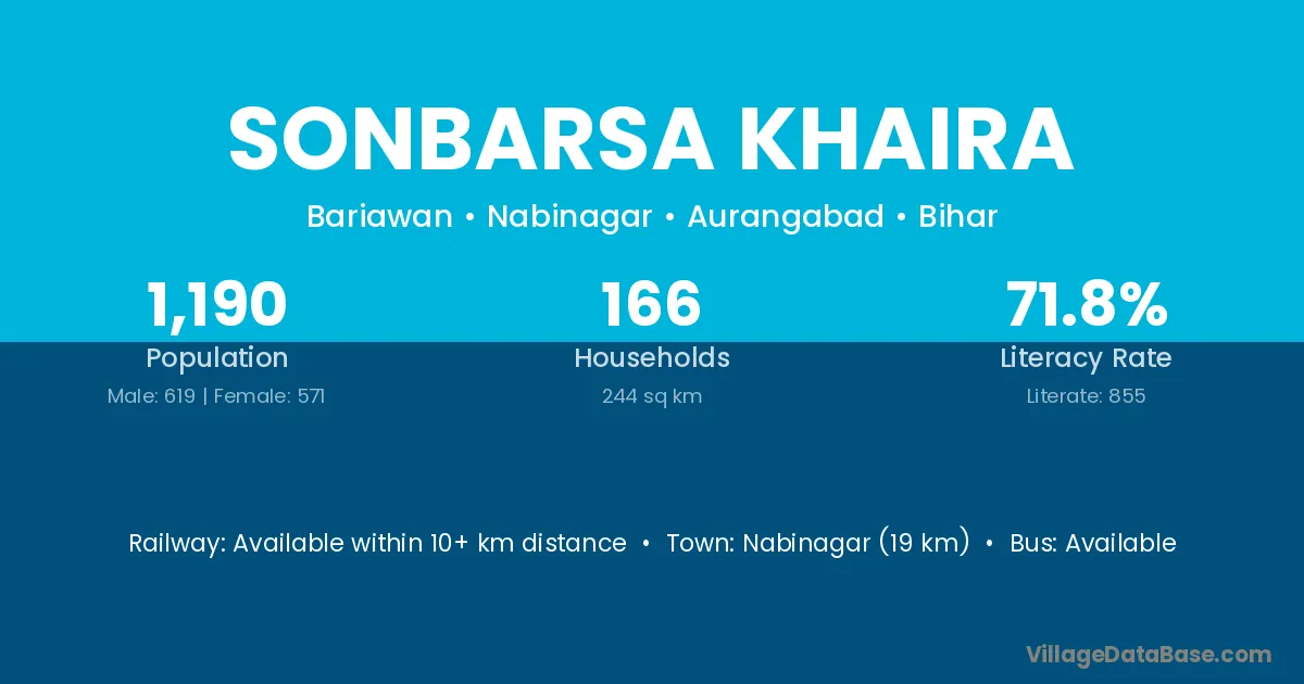 Sonbarsa Khaira village has a total population of 1,190 people, of which 619 are males and 571 are females.