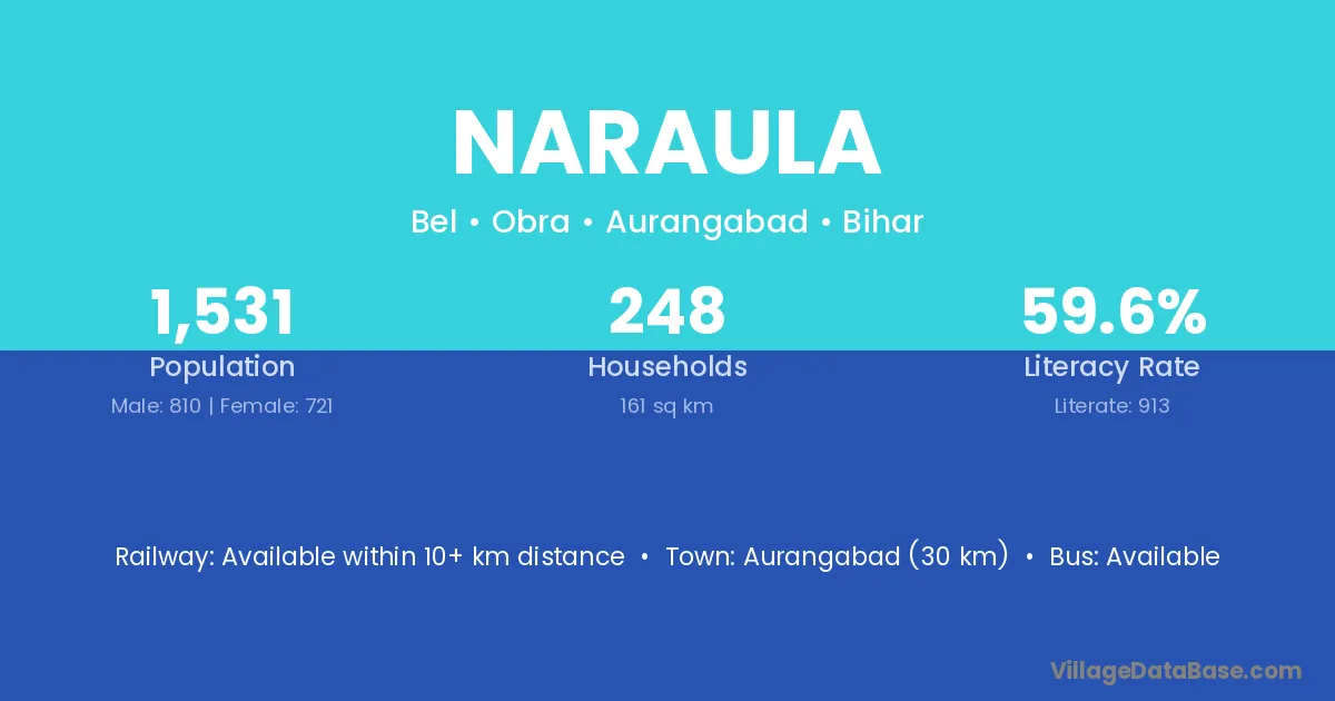 Aurangabad (30 km) is the nearest town to Naraula village for major economic activities and is located approximately 30 km away.