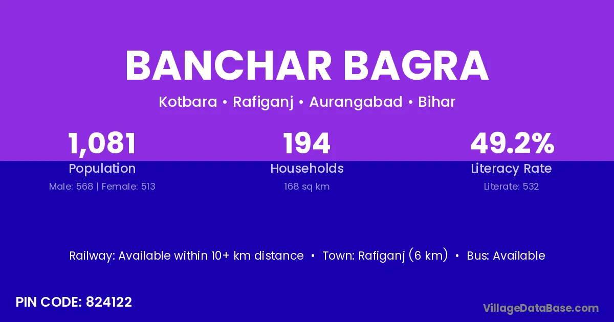 Rafiganj (6 km) is the nearest town to Banchar Bagra village for major economic activities and is located approximately 6 km away.