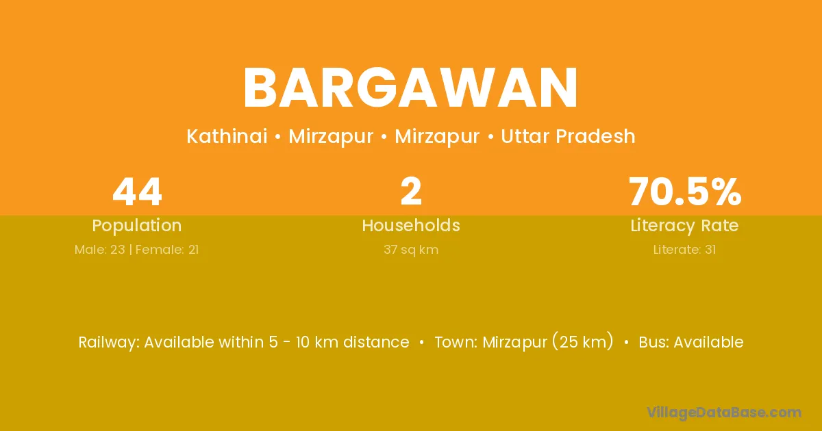 The literacy rate of Bargawan village is 58.31%. Male literacy stands at 64.69% and female literacy at 51.66%.
