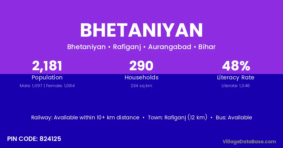 Rafiganj (12 km) is the nearest town to Bhetaniyan village for major economic activities and is located approximately 12 km away.