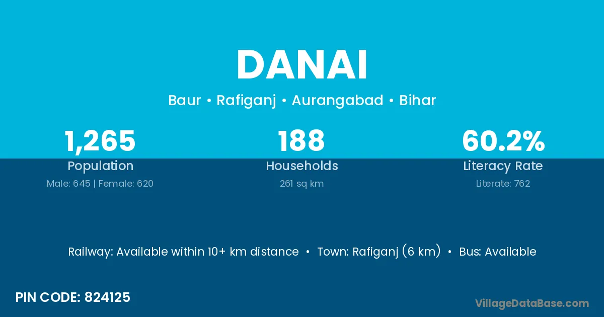 Rafiganj (6 km) is the nearest town to Danai village for major economic activities and is located approximately 6 km away.