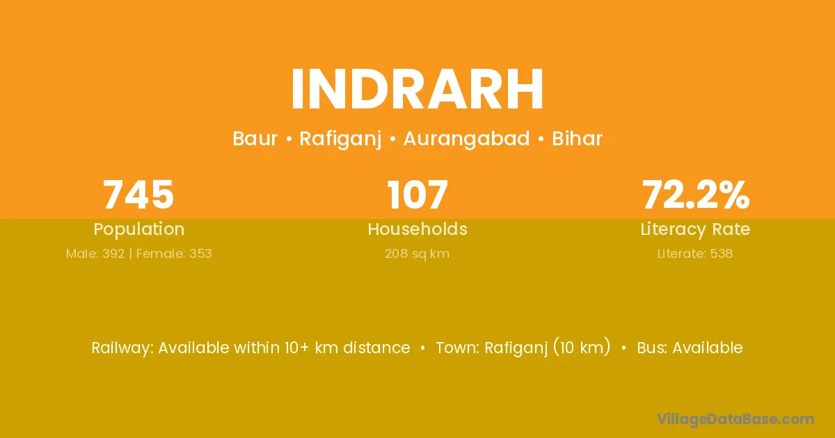 Rafiganj (10 km) is the nearest town to Indrarh village for major economic activities and is located approximately 10 km away.