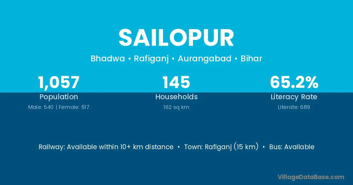 Rafiganj (15 km) is the nearest town to Sailopur village for major economic activities and is located approximately 15 km away.
