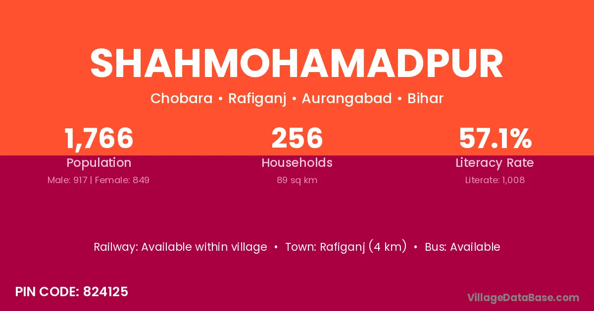 Rafiganj (4 km) is the nearest town to Shahmohamadpur village for major economic activities and is located approximately 4 km away.