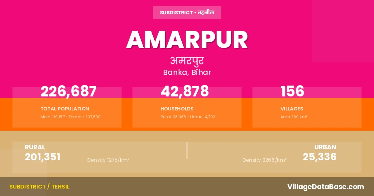 Amarpur is a town and Subdivision in the Banka district of the Bihar. In India, a Subdivision is a subdivision of a district responsible for the administration and revenue collection of a specific area within the district. Subdivisions play a crucial role in the local governance structure, contributing significantly to the development and administration of their communities.