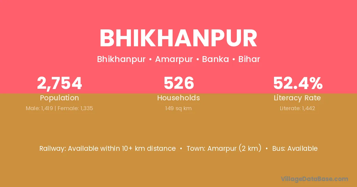 Amarpur (2 km) is the nearest town to Bhikhanpur village for major economic activities and is located approximately 2 km away.