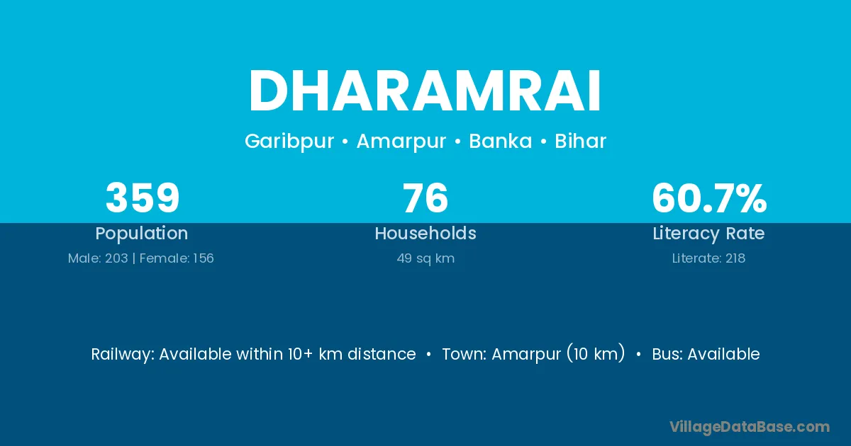 Dharamrai village has a total population of 359 people, of which 203 are males and 156 are females.