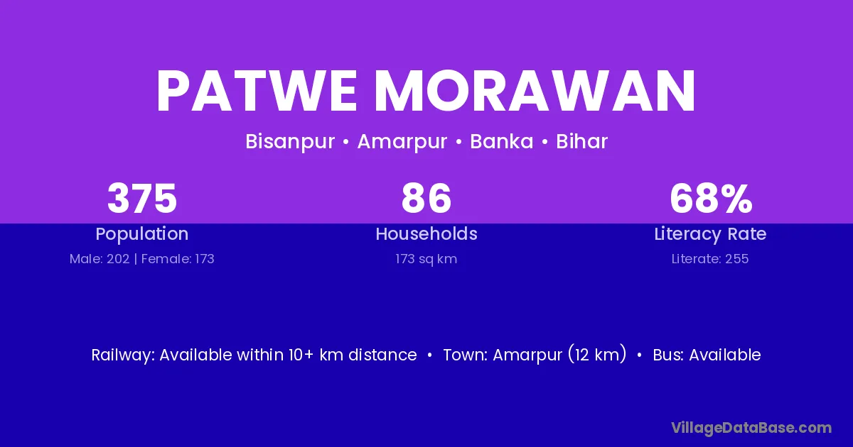 Amarpur (12 km) is the nearest town to Patwe Morawan village for major economic activities and is located approximately 12 km away.