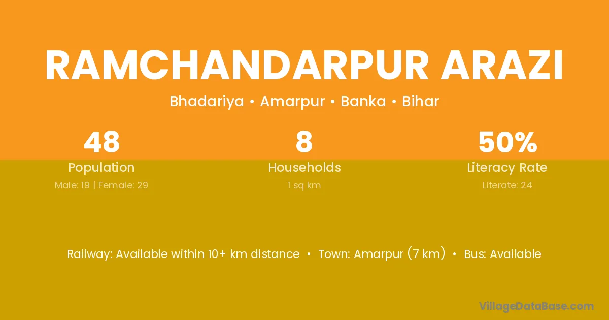 Ramchandarpur Arazi village has a total population of 48 people, of which 19 are males and 29 are females.