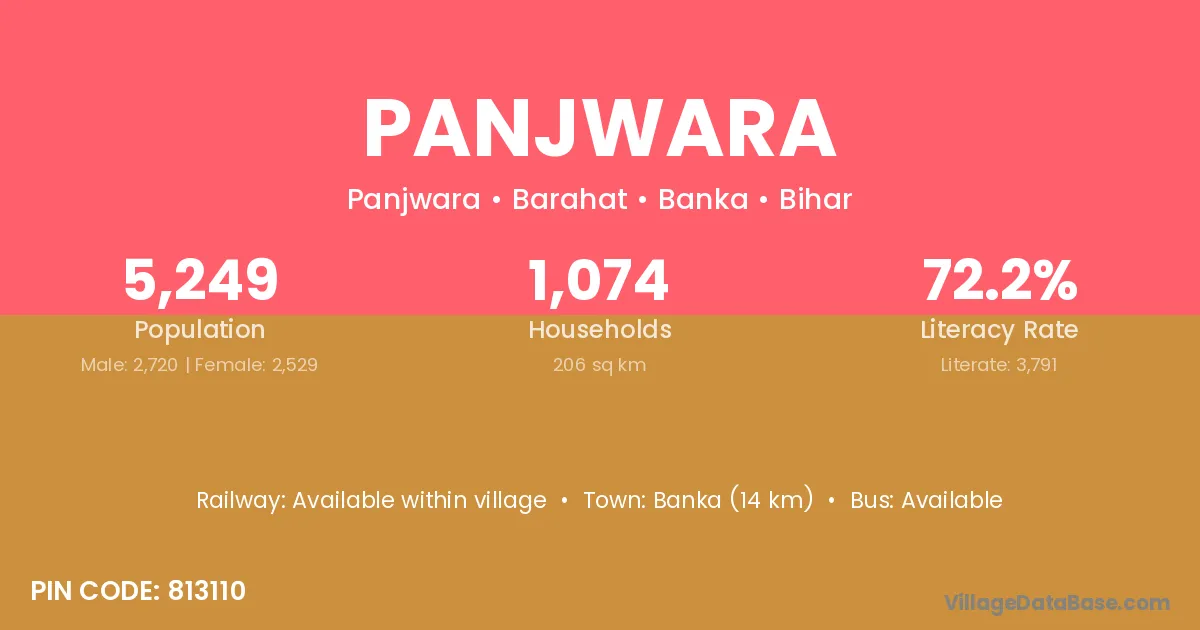 Banka (14 km) is the nearest town to Panjwara village for major economic activities and is located approximately 14 km away.