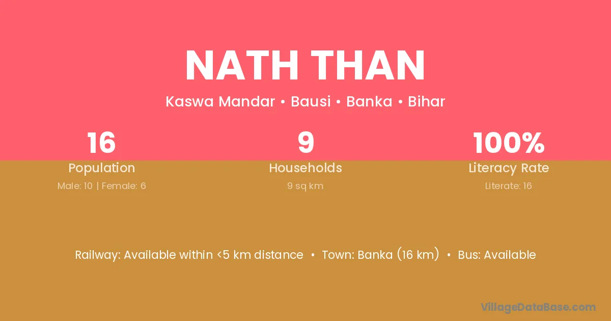Banka (16 km) is the nearest town to Nath Than village for major economic activities and is located approximately 16 km away.