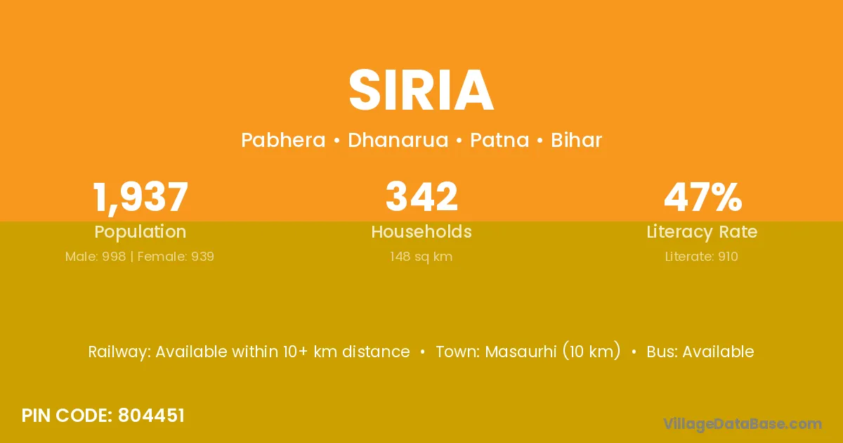 Banka (44 km) is the nearest town to Siria village for major economic activities and is located approximately 44 km away.