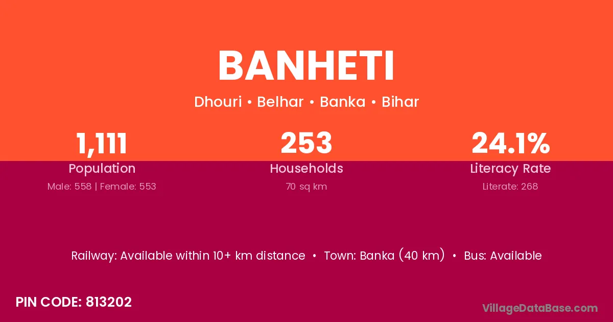 Banka (40 km) is the nearest town to Banheti village for major economic activities and is located approximately 40 km away.