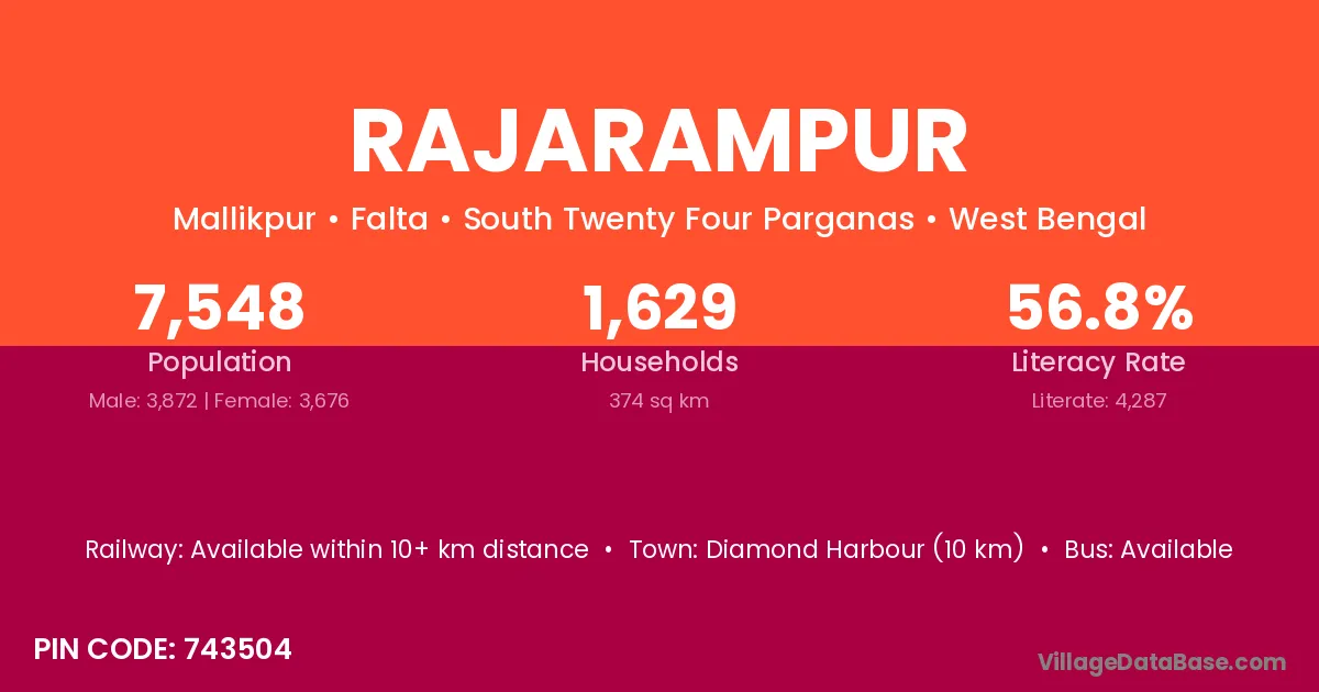 Banka (45 km) is the nearest town to Rajarampur village for major economic activities and is located approximately 45 km away.