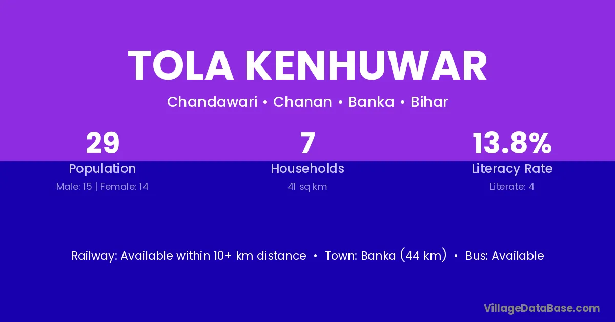 Tola Kenhuwar village has a total population of 29 people, of which 15 are males and 14 are females.