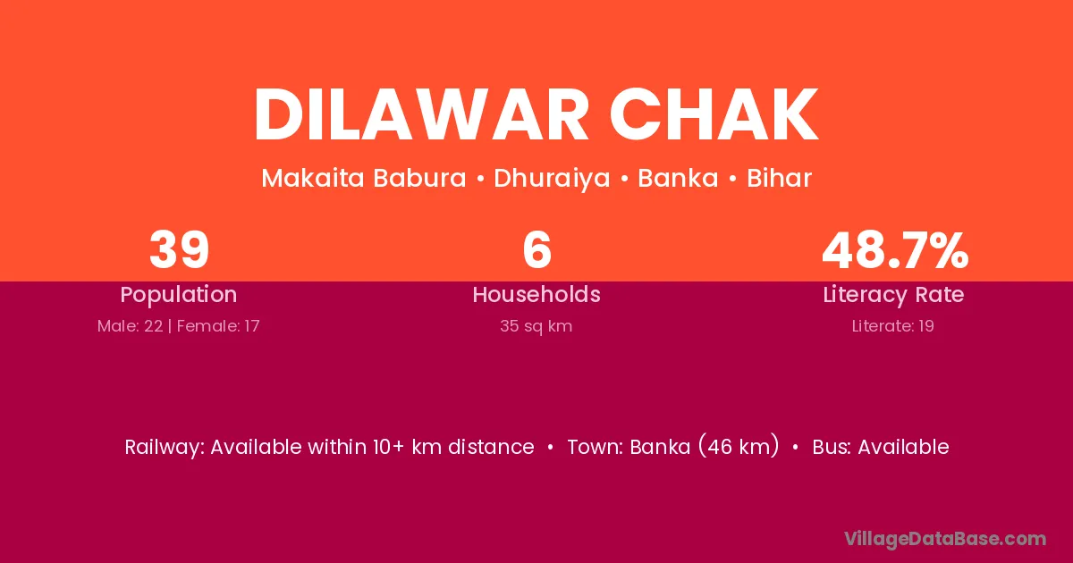 Banka (46 km) is the nearest town to Dilawar Chak village for major economic activities and is located approximately 46 km away.