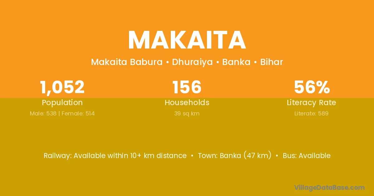 Makaita village has a total population of 1,052 people, of which 538 are males and 514 are females.
