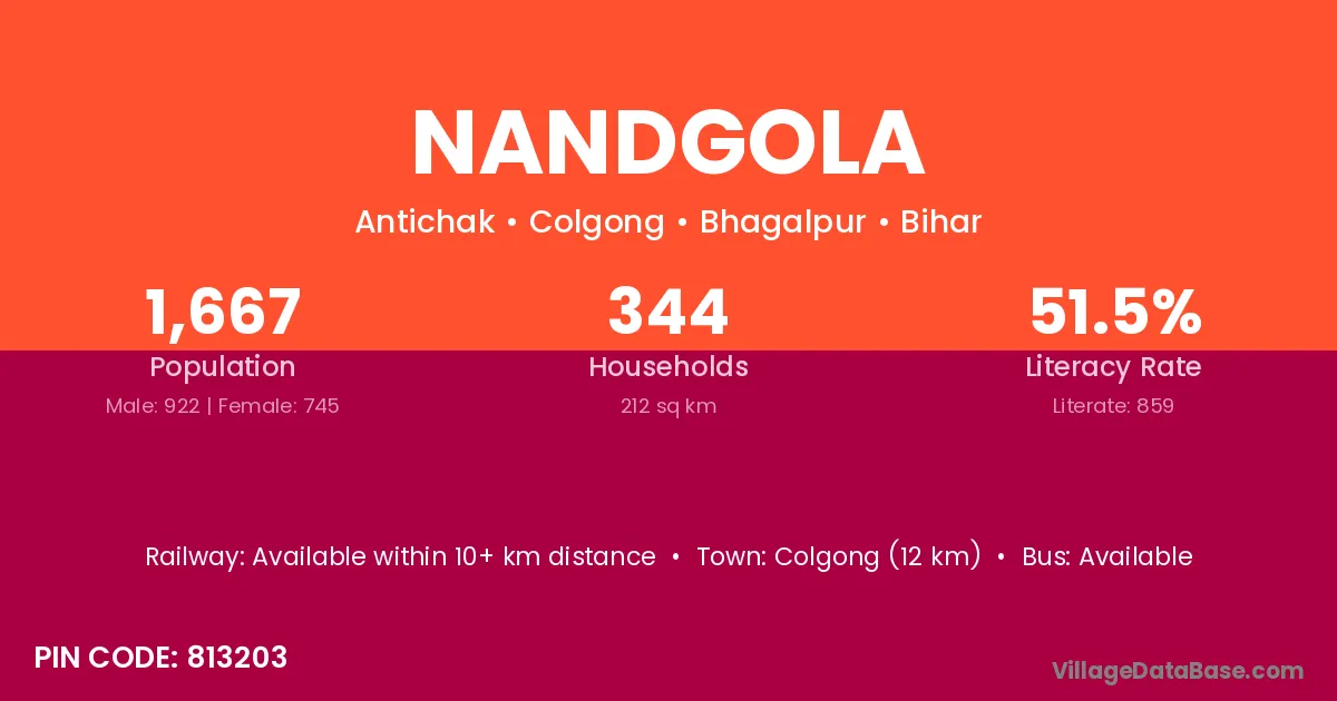 Bhagalpur (31 km) is the nearest town to Nandgola village for major economic activities and is located approximately 31 km away.