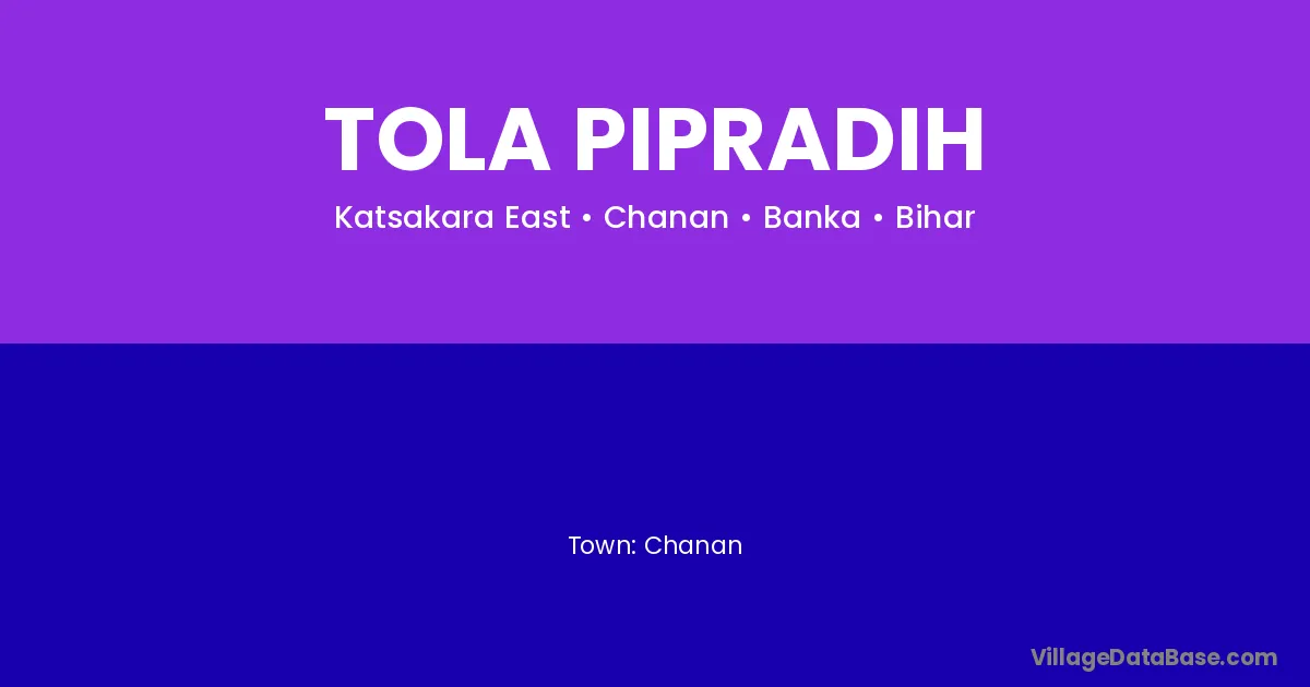 Banka (40 km) is the nearest town to Tola Pipradih village for major economic activities and is located approximately 40 km away.