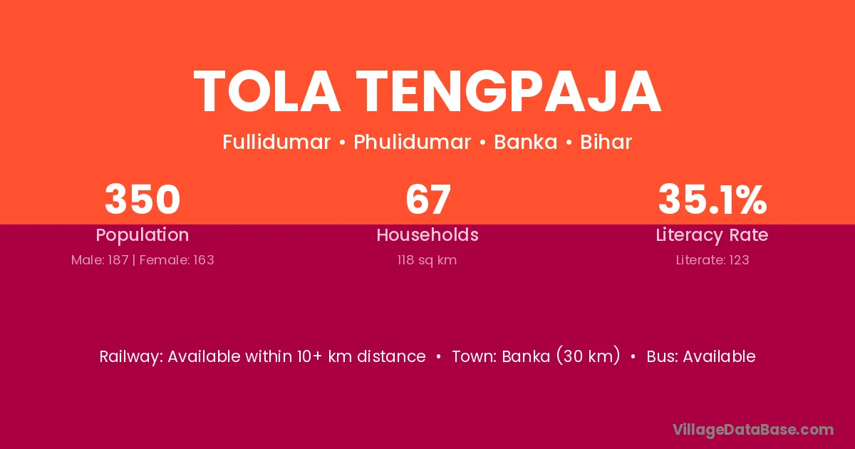 Banka (30 km) is the nearest town to Tola Tengpaja village for major economic activities and is located approximately 30 km away.