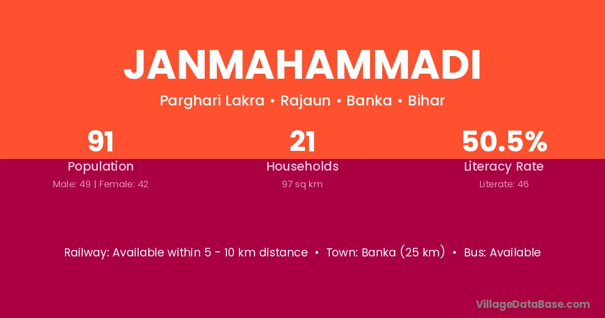 Banka (25 km) is the nearest town to Janmahammadi village for major economic activities and is located approximately 25 km away.