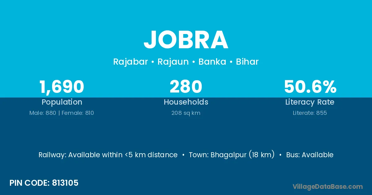 Bhagalpur (18 km) is the nearest town to Jobra village for major economic activities and is located approximately 18 km away.