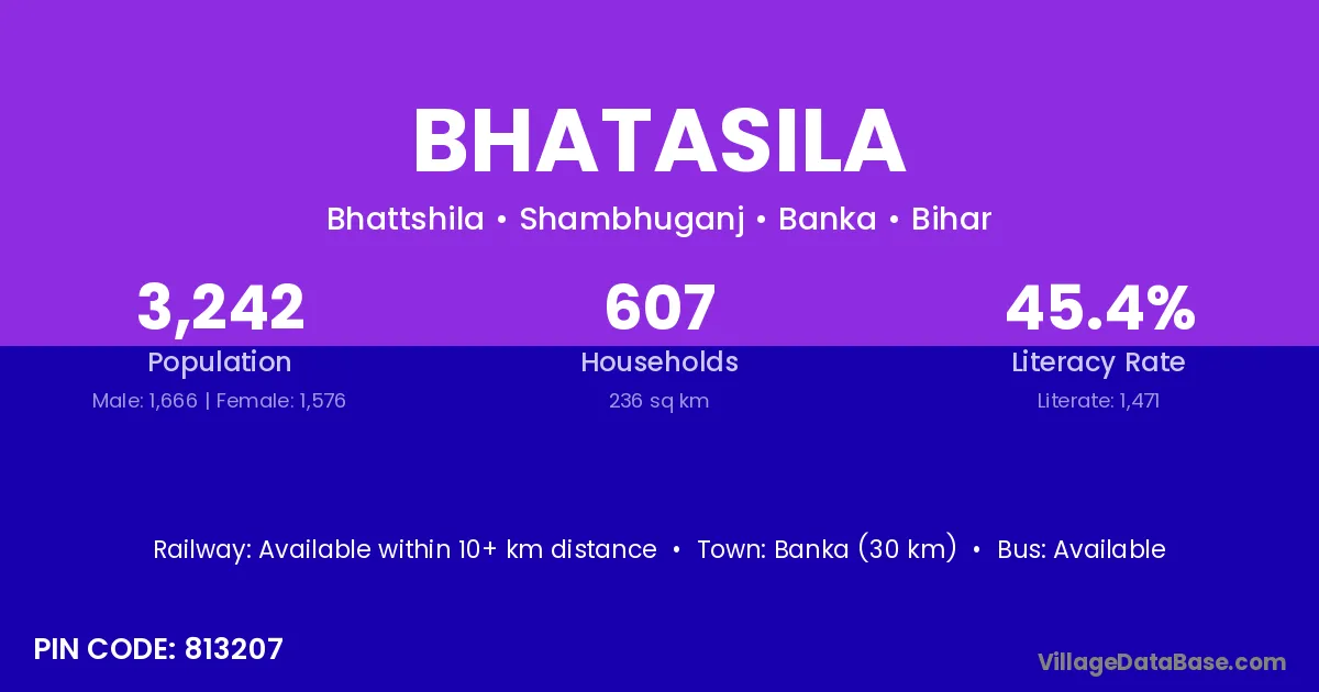 Banka (30 km) is the nearest town to Bhatasila village for major economic activities and is located approximately 30 km away.