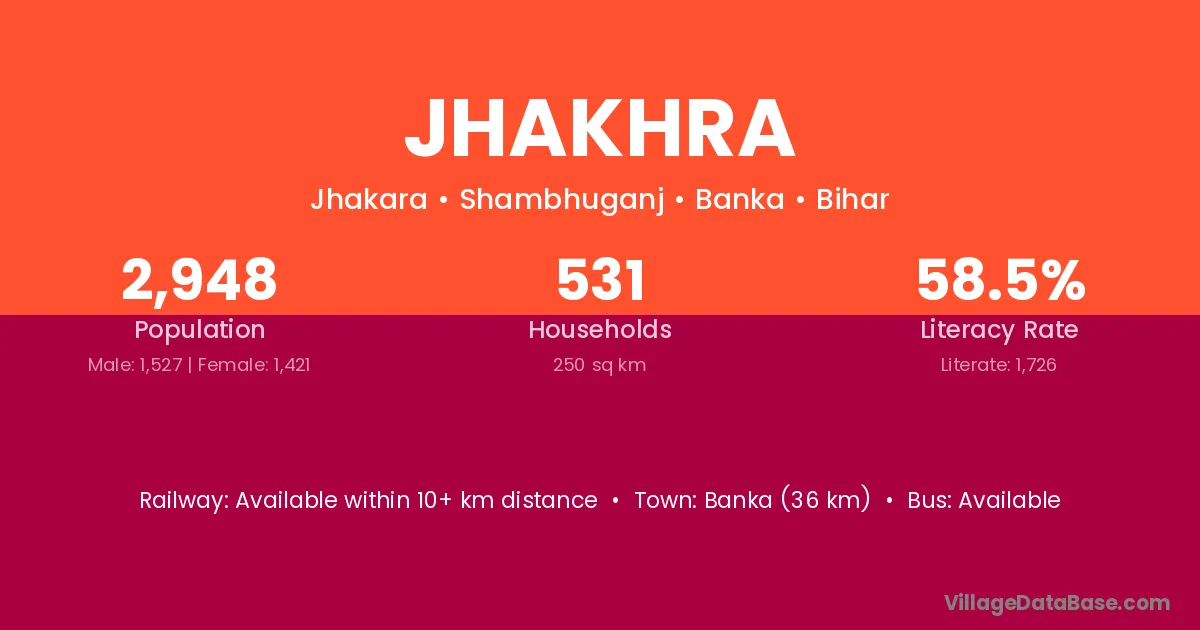 Banka (36 km) is the nearest town to Jhakhra village for major economic activities and is located approximately 36 km away.