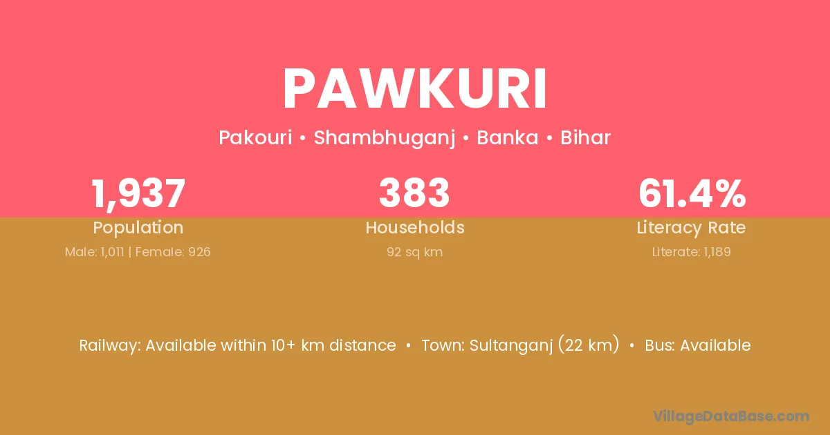 Sultanganj (22 km) is the nearest town to Pawkuri village for major economic activities and is located approximately 22 km away.